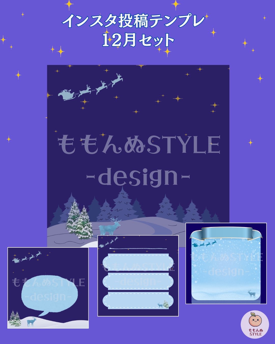 「ももんぬSTYLE -design-」オリジナルの優しい色合いのイラストを使った、Instagram投稿向けテンプレート。スマホ壁紙と連動した2026年版 12月イラストデザインの6枚セット。