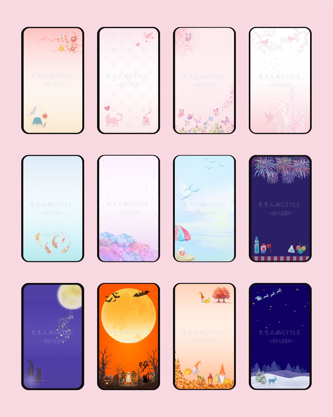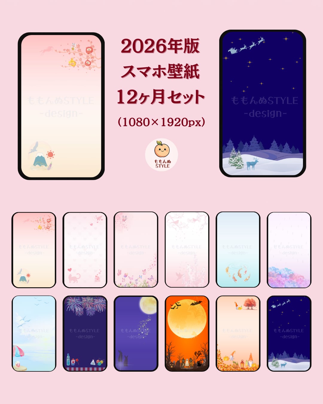 「ももんぬSTYLE -design-」オリジナルの2026年の12ヶ月をテーマにしたスマホ壁紙セットです。