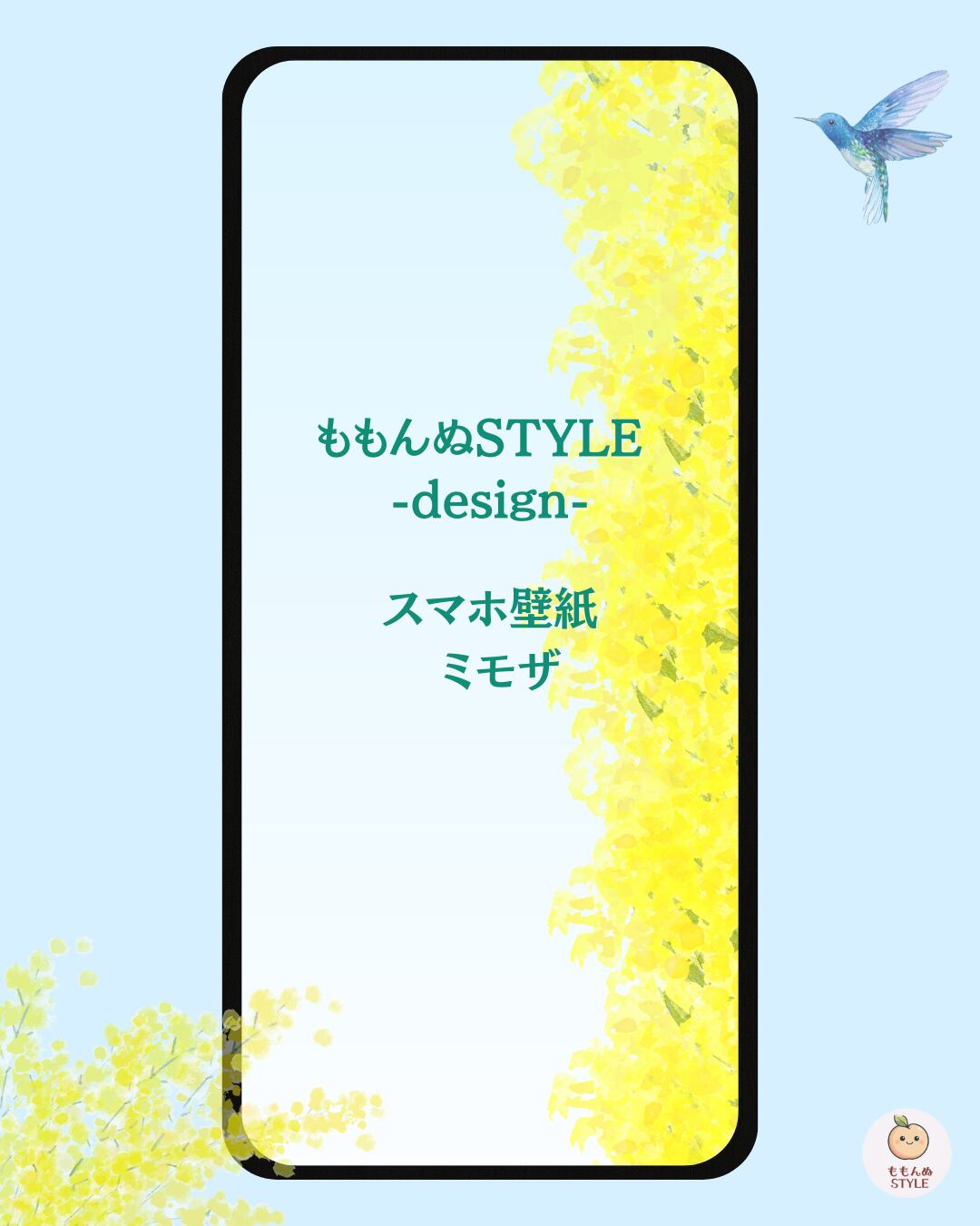 タイトルは「ミモザ」。陽だまりのような黄色い花が、春の光をぎゅっと集めて、画面いっぱいに明るさを届けてくれるデザインです。