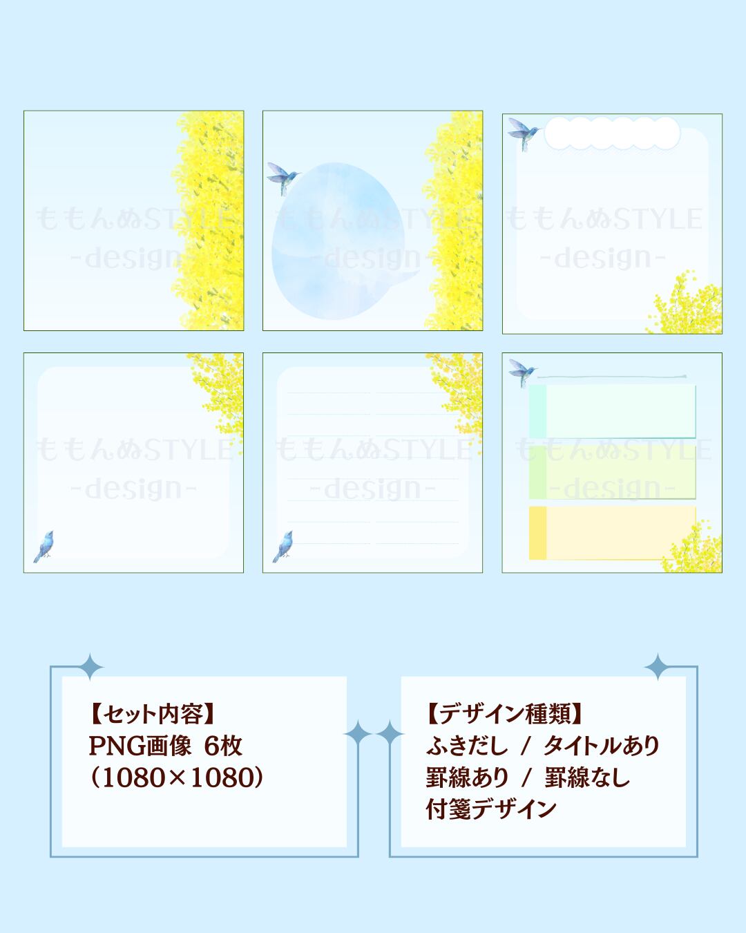 ・インスタ投稿テンプレ PNG画像 × 6枚